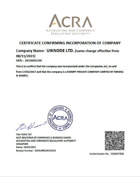 Uiknode Limited is a registered Singapore financial service compliant with all government rules and regulations.